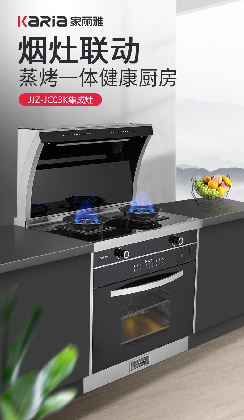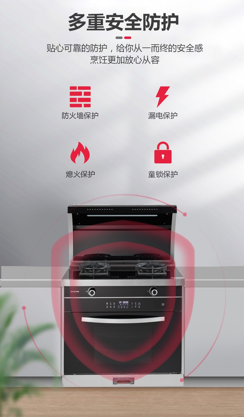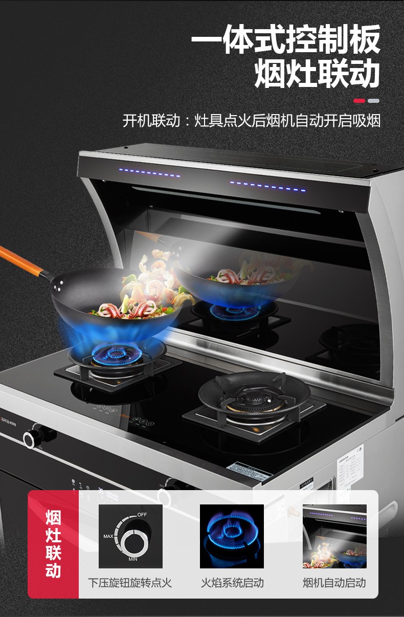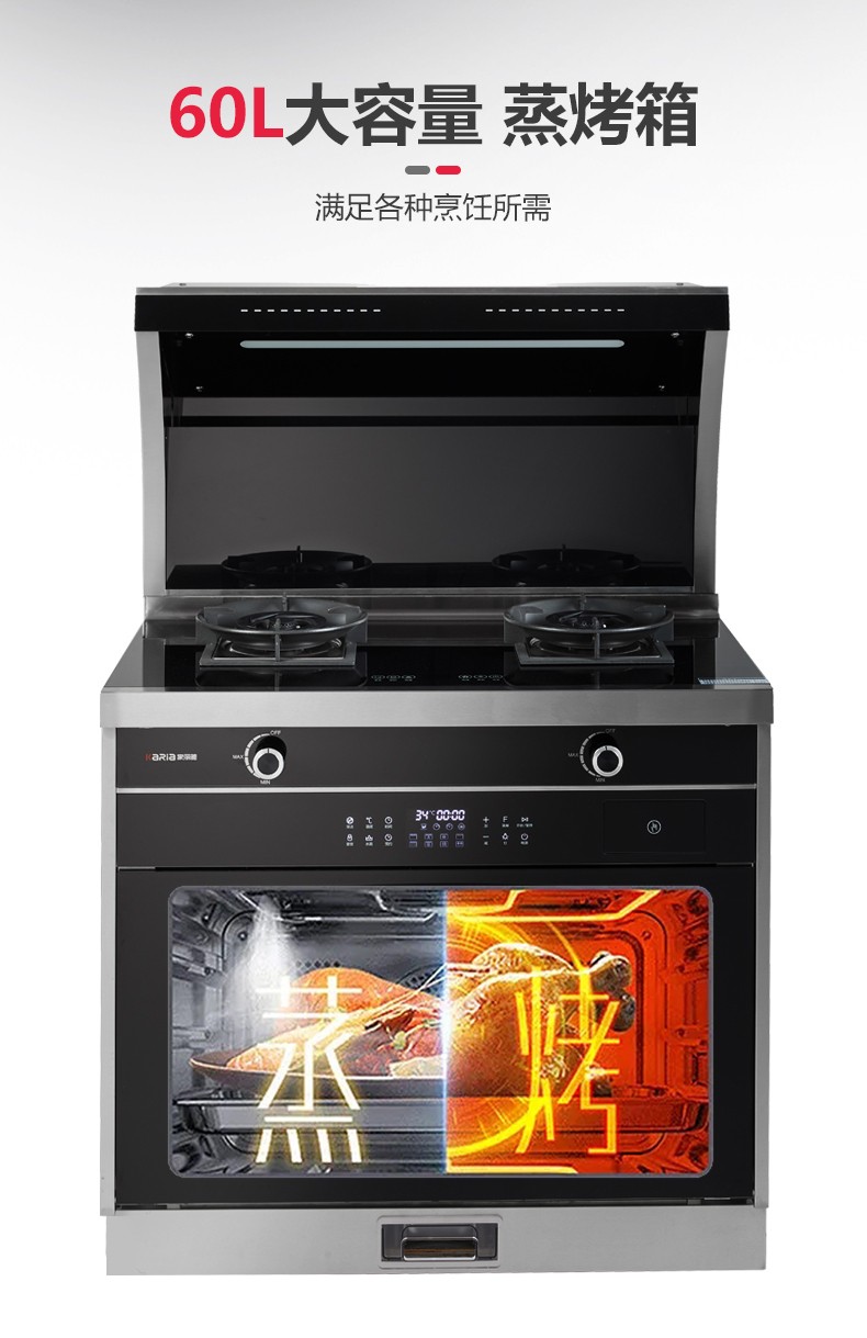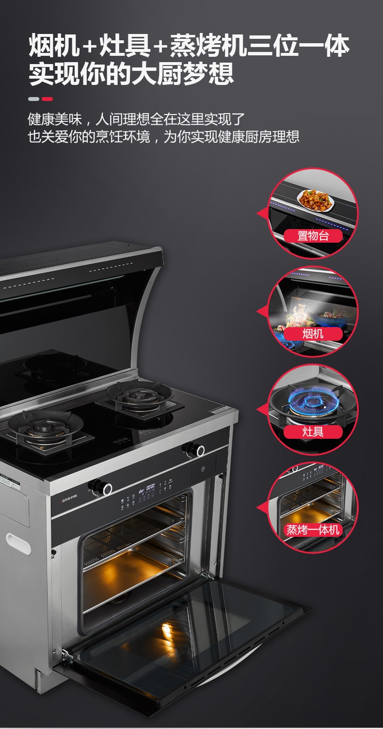 吸油煙機+燃氣雙灶+蒸烤一體四合一集成功能