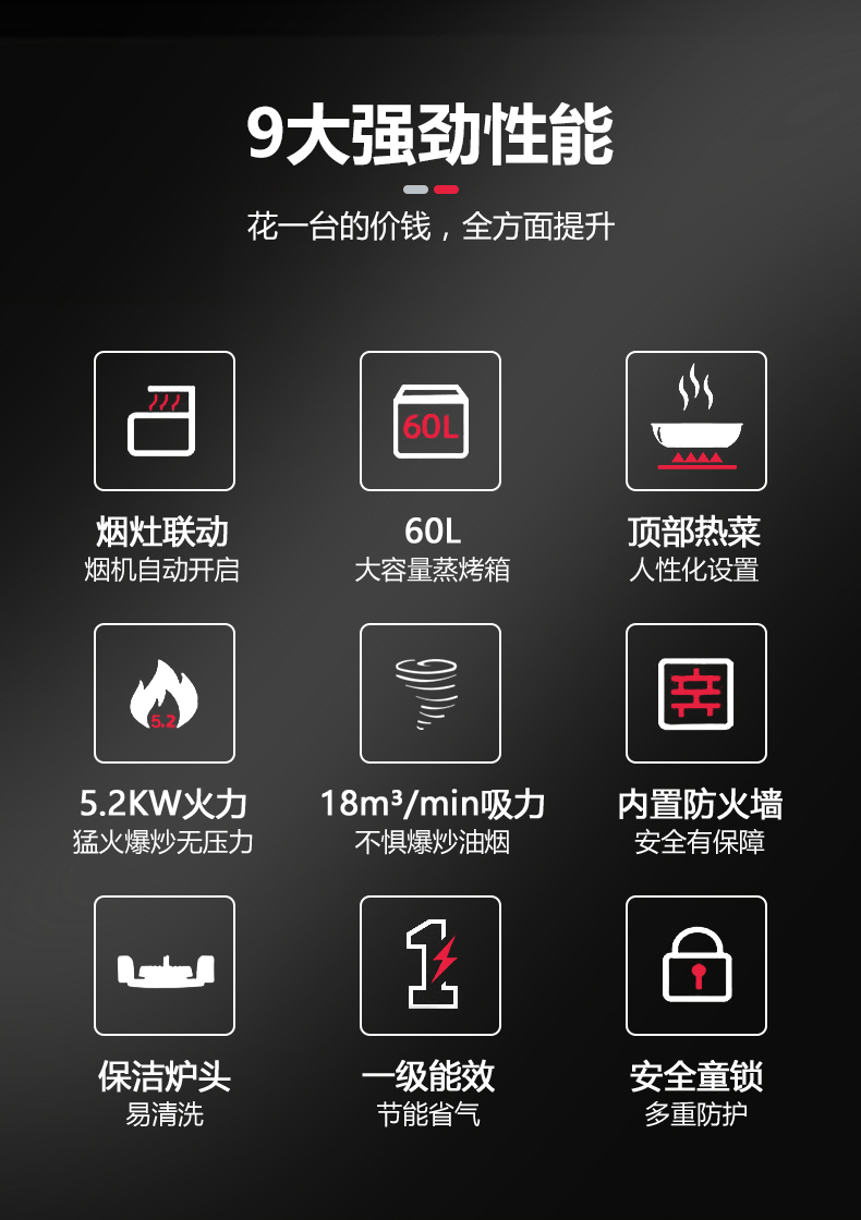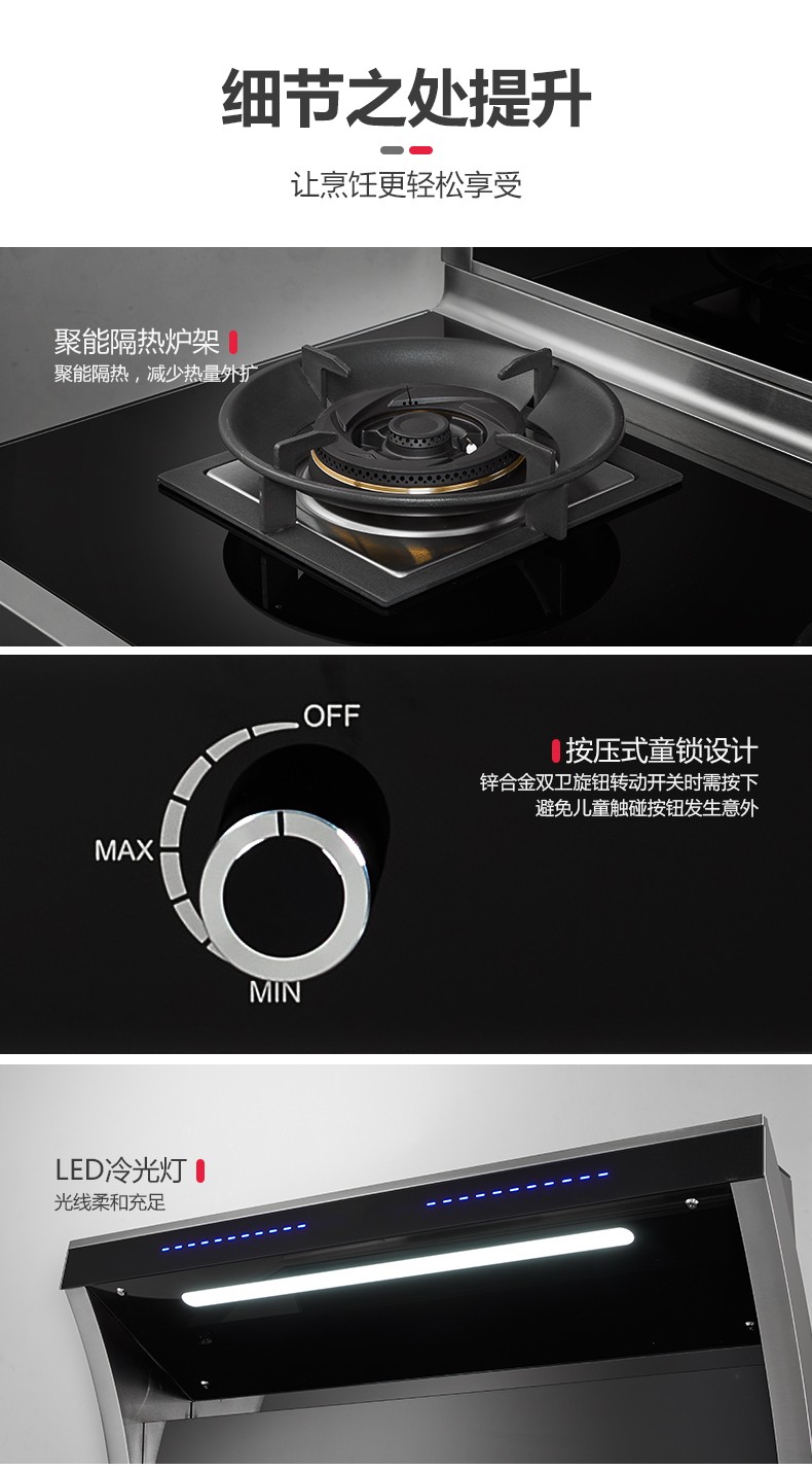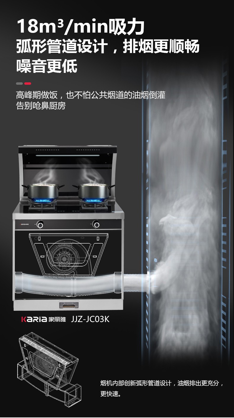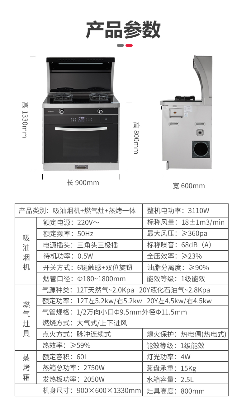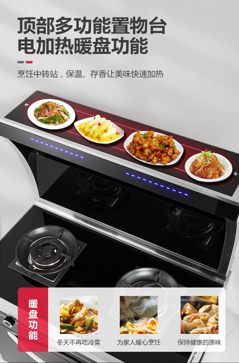 吸油煙機+燃氣雙灶+蒸烤一體四合一集成功能